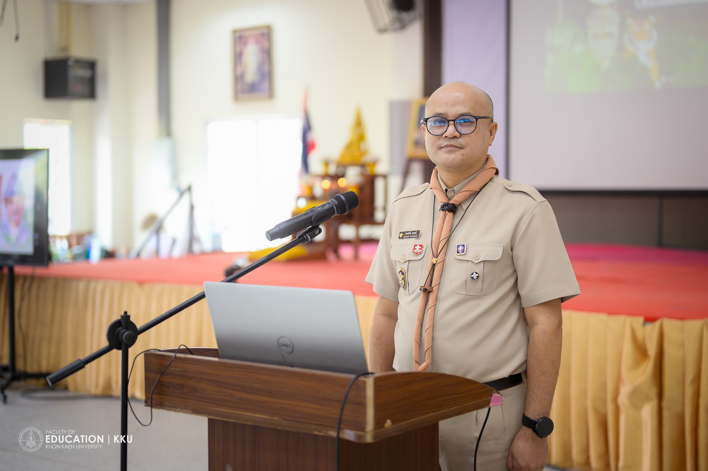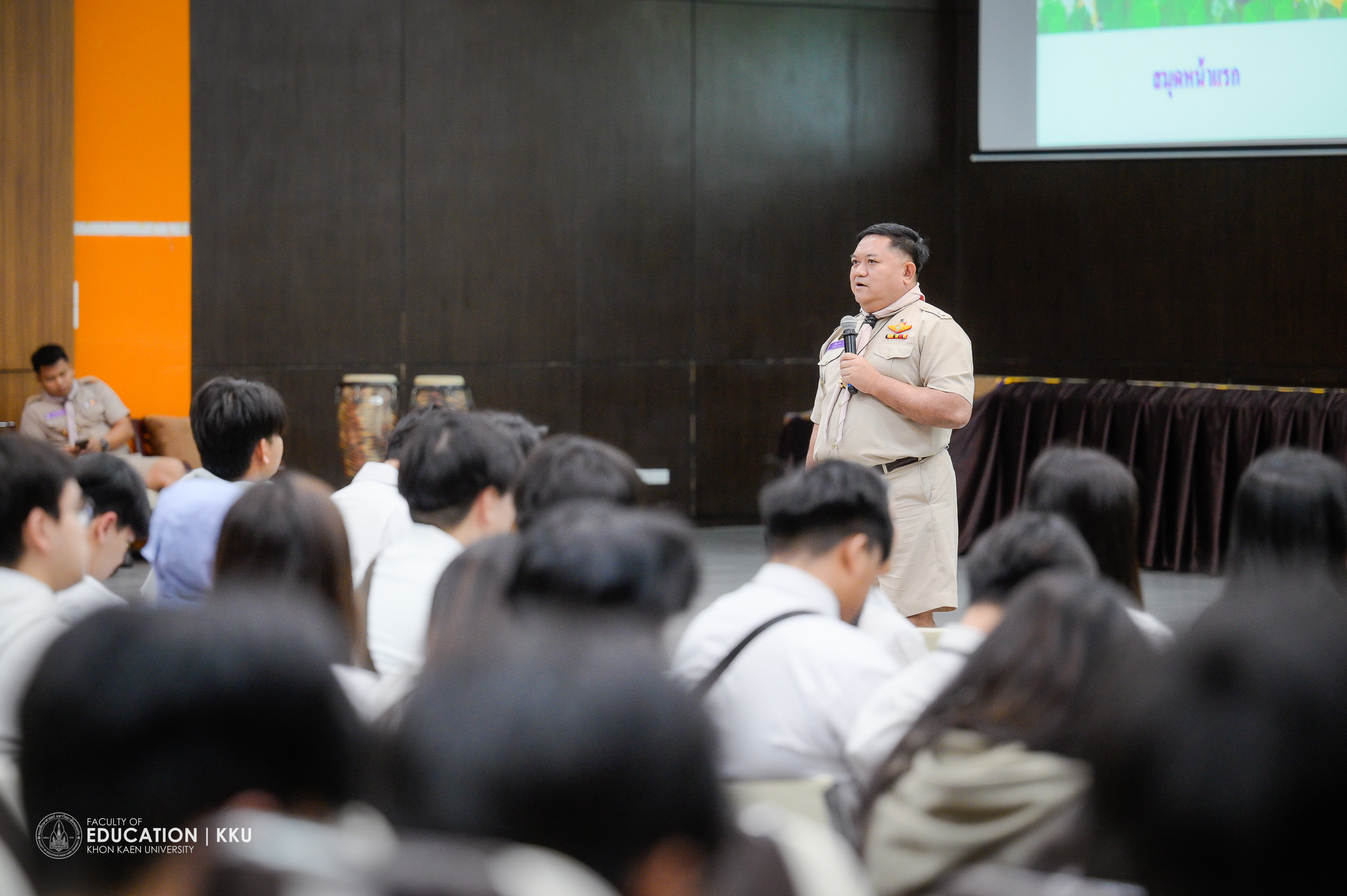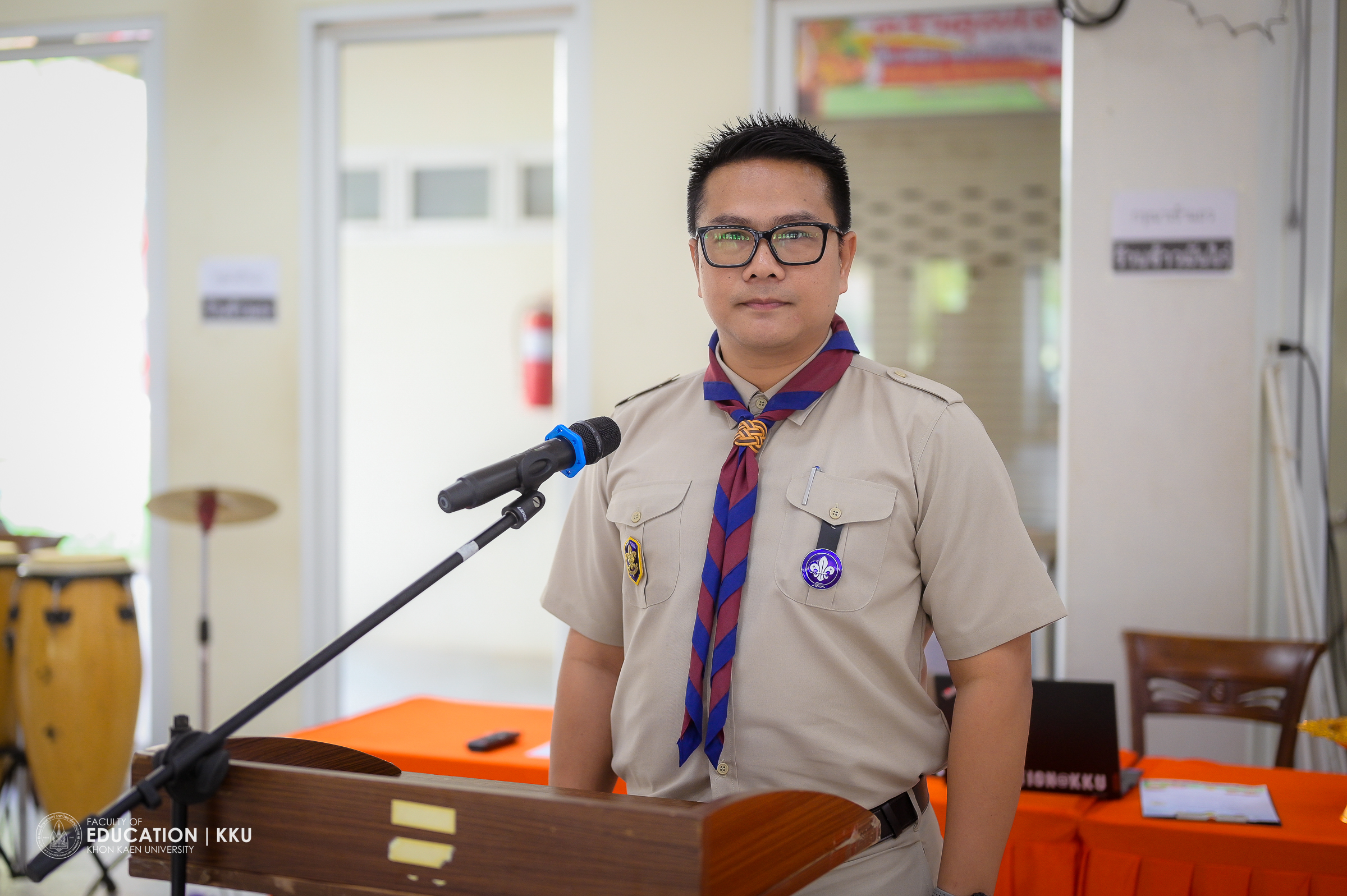 ด้าน รศ.ดร.อิศรา ก้านจักร คณบดีคณะศึกษาศาสตร์ มหาวิทยาลัยขอนแก่น ได้กล่าวต้อนรับผู้เข้าร่วมการอบรมและให้โอวาทแก่นักศึกษา โดยเน้นย้ำถึงความสำคัญของการมีวุฒิทางการลูกเสือสำหรับนักศึกษาวิชาชีพครูทุกคน เพื่อเตรียมความพร้อมสำหรับการสอนกิจกรรมลูกเสือ ซึ่งเป็นส่วนหนึ่งของการฝึกประสบการณ์วิชาชีพครู การอบรมในครั้งนี้จึงเป็นการสร้างความมั่นใจให้กับนักศึกษาครู ก่อนที่จะก้าวไปเป็นครูมืออาชีพอย่างเต็มตัว พร้อมสำหรับการนำความรู้ไปใช้ในการจัดการเรียนการสอนลูกเสือในระหว่างการฝึกประสบการณ์วิชาชีพ พร้อมทั้งขอบคุณสโมสรลูกเสือจังหวัดขอนแก่น สำหรับการสนับสนุนและความร่วมมือในการจัดกิจกรรมอันเป็นประโยชน์นี้