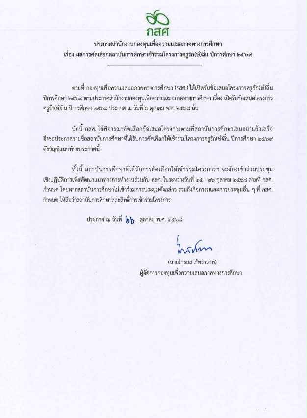 October 22, 2025 – The Equitable Education Fund (EEF) officially announced the selection of educational institutions to participate in the “Kru Rak(k) Thin” (Local Teacher) Project for the academic year 2026. The Faculty of Education, Khon Kaen University, was selected for its Bachelor of Education program in Early Childhood and Primary Education, with a dual major in Early Childhood and Primary Education. This marks a significant role in continuously producing and nurturing teachers for society.