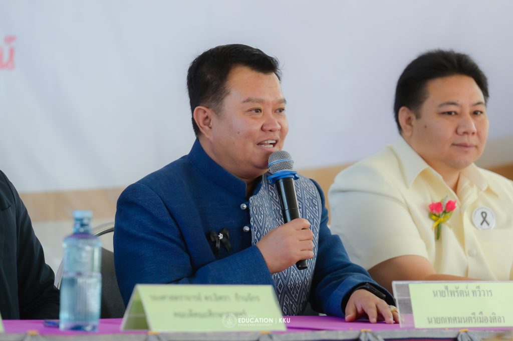 Furthermore, Mr. Pairat Thaweewarn, Mayor of Sila Town Municipality, shared his experiences as a successful pilot area. He cited the success of applying the KKU Demonstration Curriculum in Sila, which saw student numbers surge dramatically from 50-60 to over 230 in just over a year. This success demonstrates that this collaboration brings the “Demonstration Standard” to the local area, allowing citizens access to high-quality education free of charge, and helping reduce the burden of travel costs associated with studying in the city center. This initiative will create a municipal education prototype school that can serve as a model for other areas.
