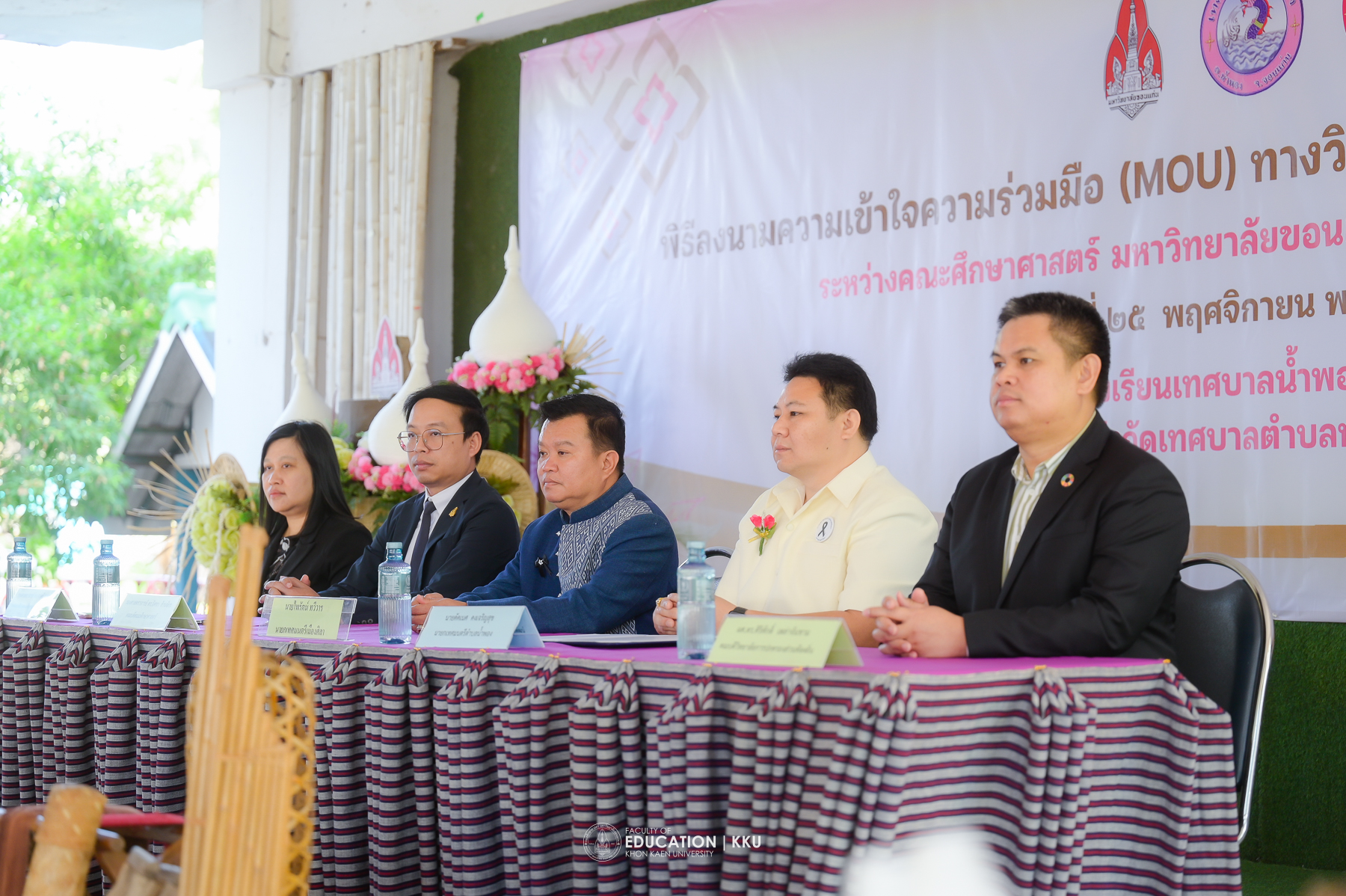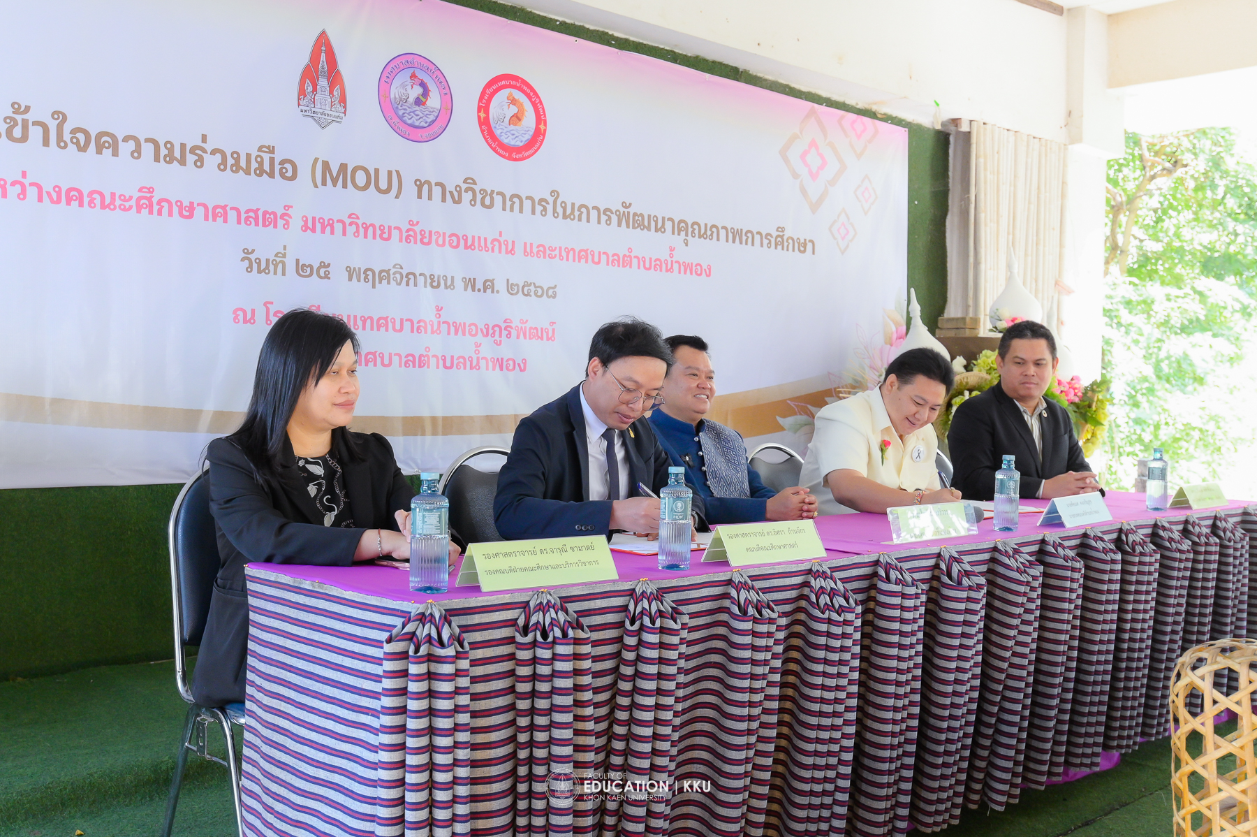 November 25, 2025 – The Faculty of Education, Khon Kaen University, and Nam Phong Subdistrict Municipality held the signing ceremony for a Memorandum of Understanding (MOU) at Nam Phong Phuriphat Municipal School. The goal of this agreement is to collaboratively drive and elevate the quality of education at Nam Phong Phuriphat Municipal School by applying educational innovations and curricula from the Khon Kaen University Demonstration School to develop both students and teachers to keep pace with the current world changes.