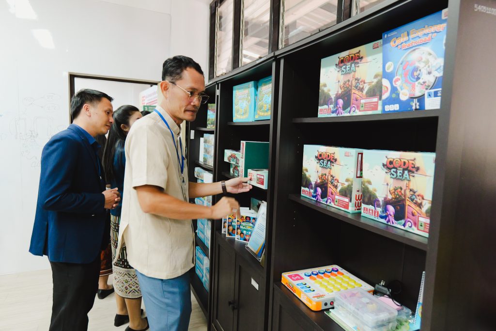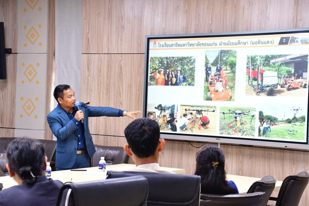 The project’s activities focused on transferring knowledge and models for creating innovator teachers. The Faculty of Education, KKU, led by the Dean and administrators, conducted a workshop on teacher preparation, which covered designing teacher personnel policies and managing teacher education institutions in response to a rapidly changing context. The delegation also visited the faculty’s Center for Commercial Educational Innovation to study the innovation ecosystem that fosters graduates to become educational innovators. Concurrently, the group conducted a study visit at Khon Kaen University Demonstration School (Modindaeng) and Khon Kaen University International Demonstration School, where they were welcomed by Asst. Prof. Dr. Sarawut Jakpeng, Associate Dean for Demonstration School Affairs and Director of KKU Demonstration School. Activities included knowledge exchange on teacher preparation models and educational innovations, such as a lecture on the “SATIT KKU Creative Innovator Model,” the role of the demonstration school as a laboratory for educational research, and the presentation of best practices in areas like project-based learning and the development of inventive innovations and board games. The delegation also visited the SMD Maker Space, a facility for producing robotics and automation works, to study its management model and successful practices for application in developing teacher preparation in Lao PDR.