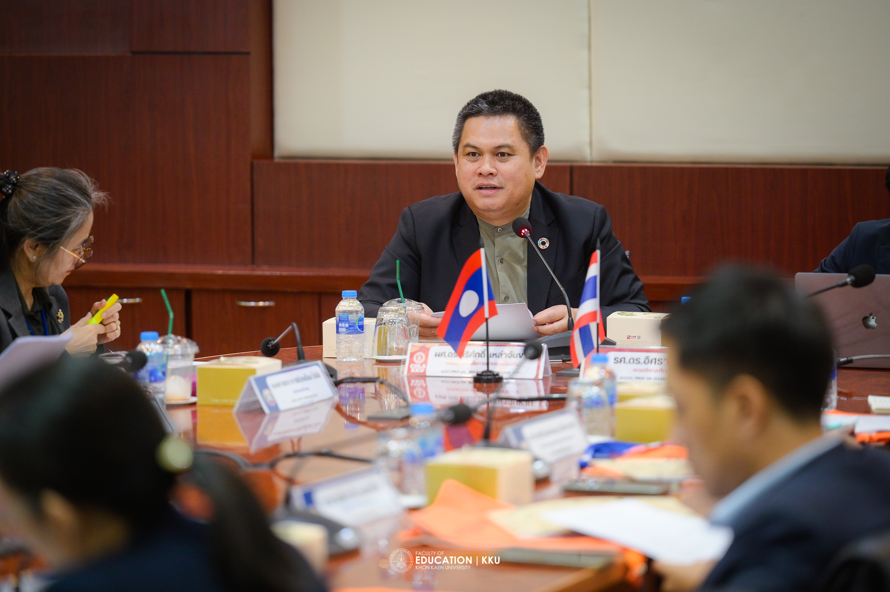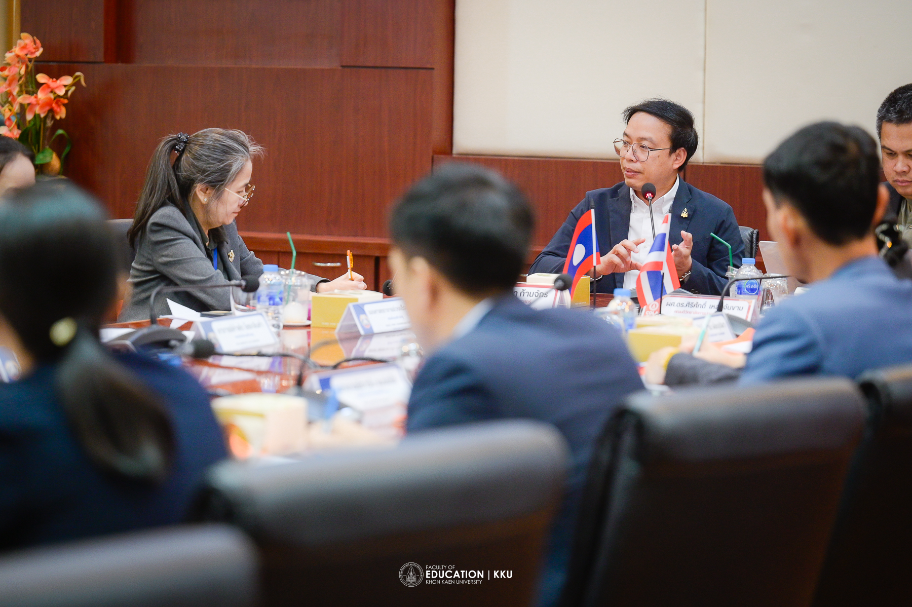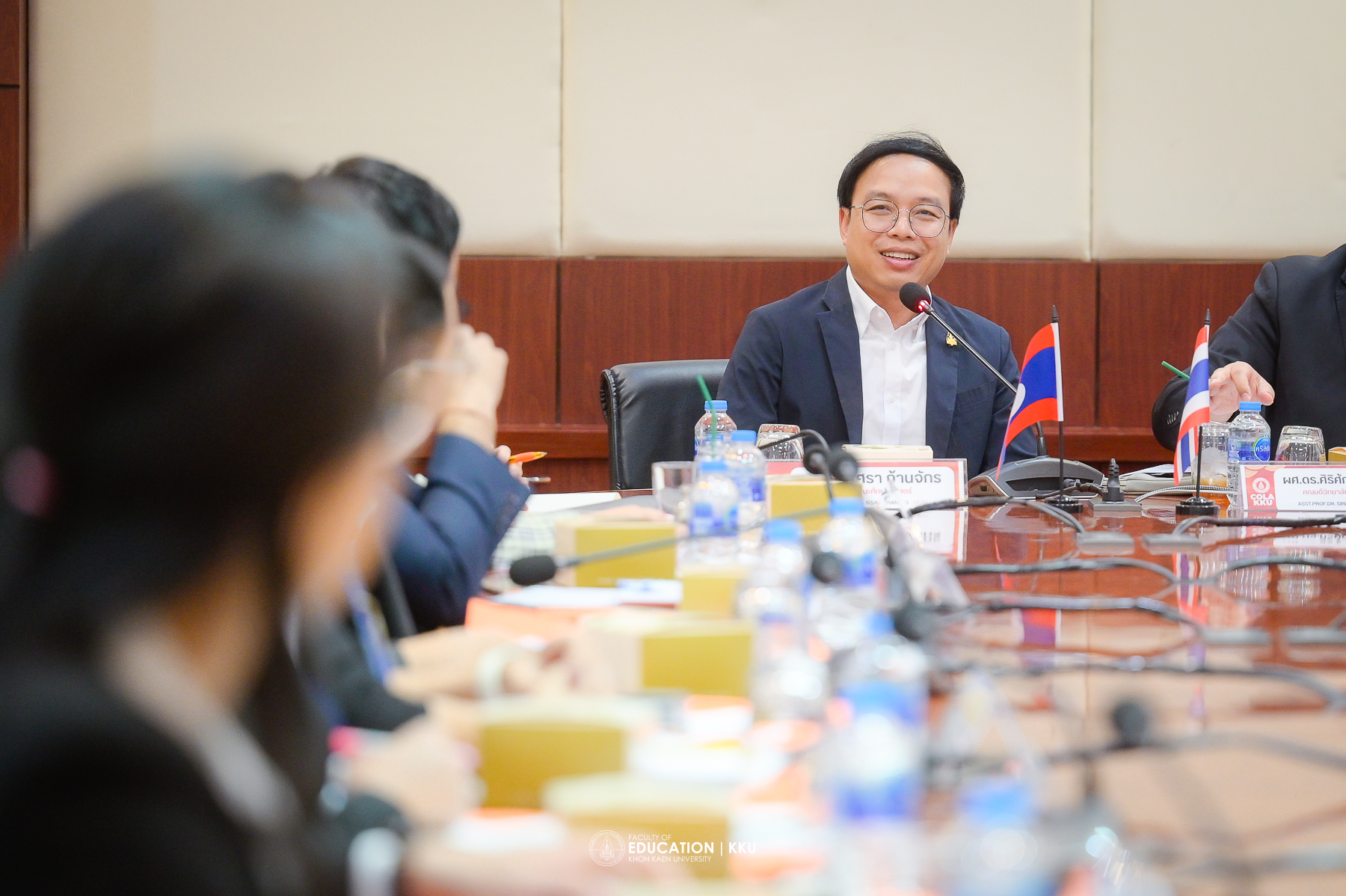 The opening ceremony was honored by Assoc. Prof. Dr. Nawarat Wara-aswapati, Vice President for International Affairs at Khon Kaen University, who spoke about the university’s international cooperation policies, especially with Lao PDR, considered a “brother and sister nation” and a key strategic area where KKU has long-standing good relations. Also present to welcome the delegation were Asst. Prof. Dr. Sirisak Laojankham, Dean of the College of Local Administration, and Assoc. Prof. Dr. Issara Kanjug, Dean of the Faculty of Education.