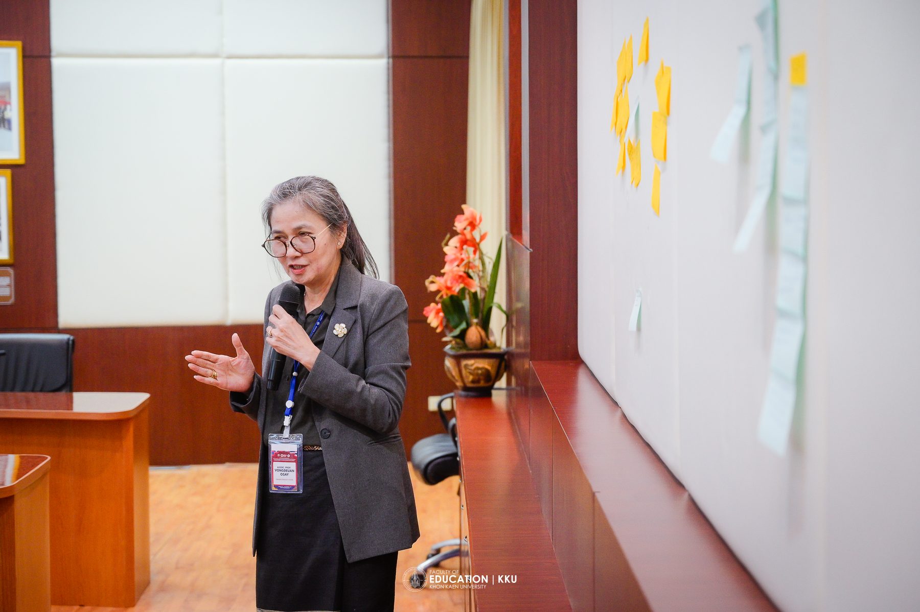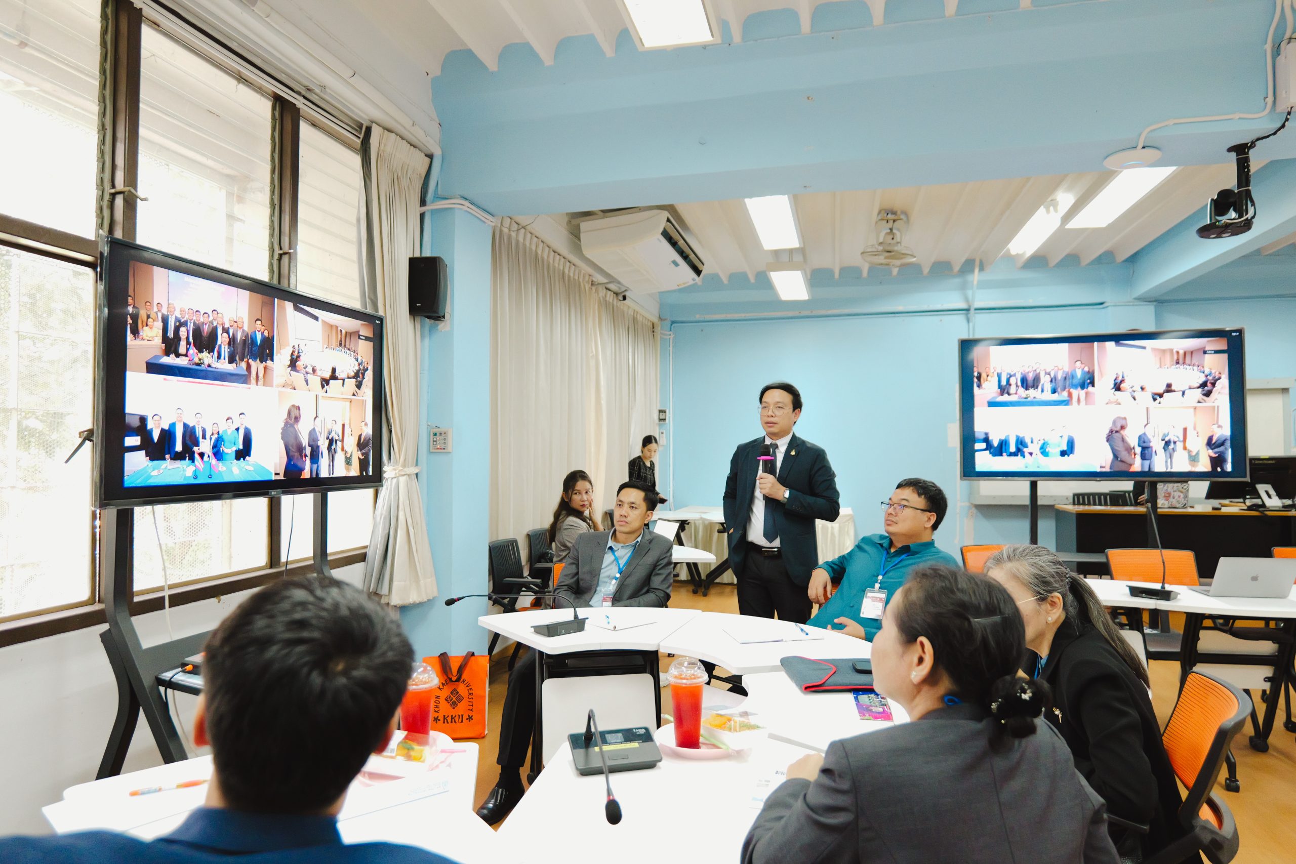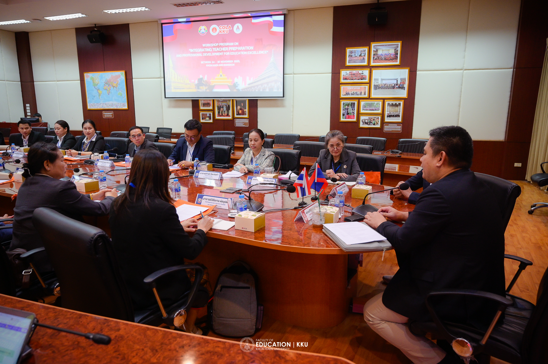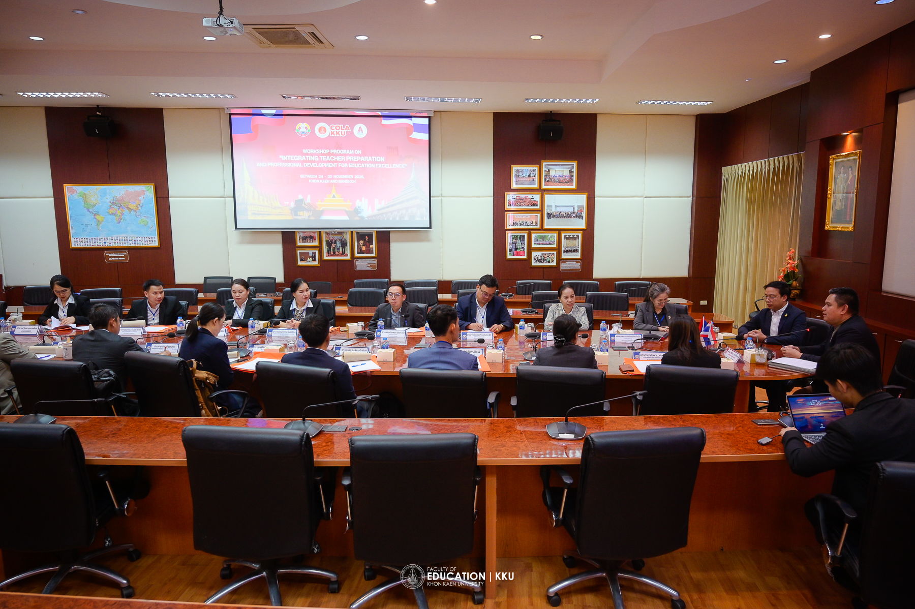 The opening ceremony was honored by Assoc. Prof. Dr. Nawarat Wara-aswapati, Vice President for International Affairs at Khon Kaen University, who spoke about the university’s international cooperation policies, especially with Lao PDR, considered a “brother and sister nation” and a key strategic area where KKU has long-standing good relations. Also present to welcome the delegation were Asst. Prof. Dr. Sirisak Laojankham, Dean of the College of Local Administration, and Assoc. Prof. Dr. Issara Kanjug, Dean of the Faculty of Education.