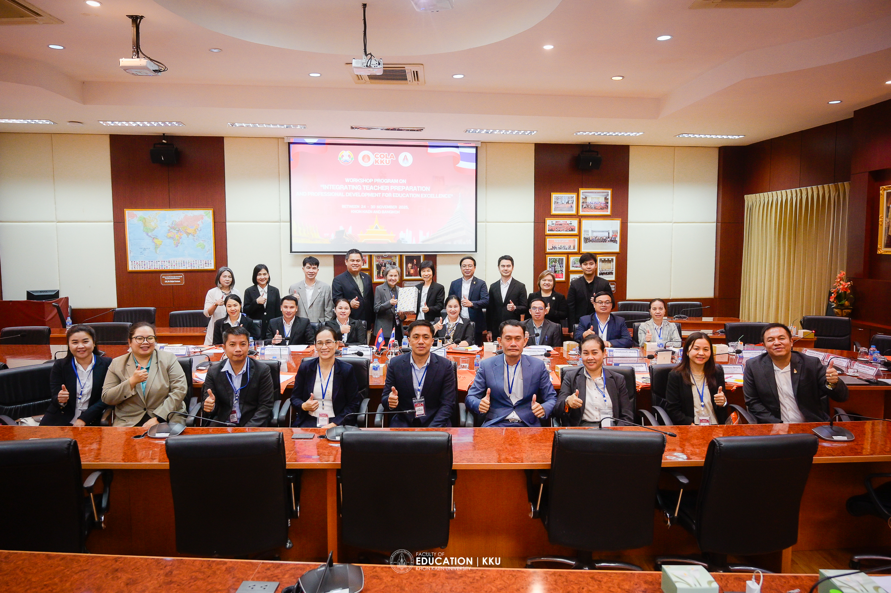 Between November 24-25, 2025 – The Faculty of Education and Khon Kaen University Demonstration School welcomed a delegation of 25 high-level executives and trainees from the Department of Teacher Education, Ministry of Education and Sports, Lao People’s Democratic Republic. The delegation was participating in the practical training project “Integrating Teacher Preparation and Professional Development for Education Excellence in Lao PDR.”