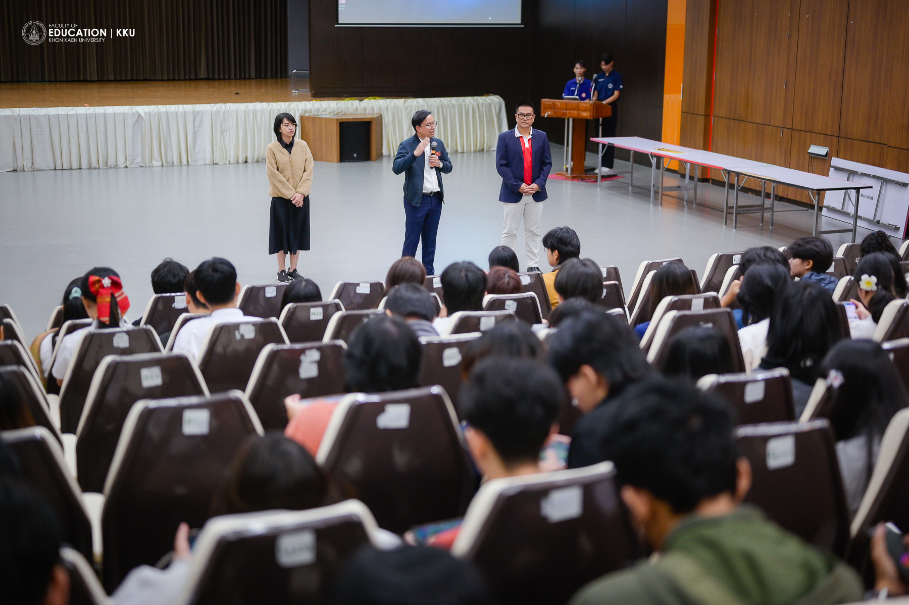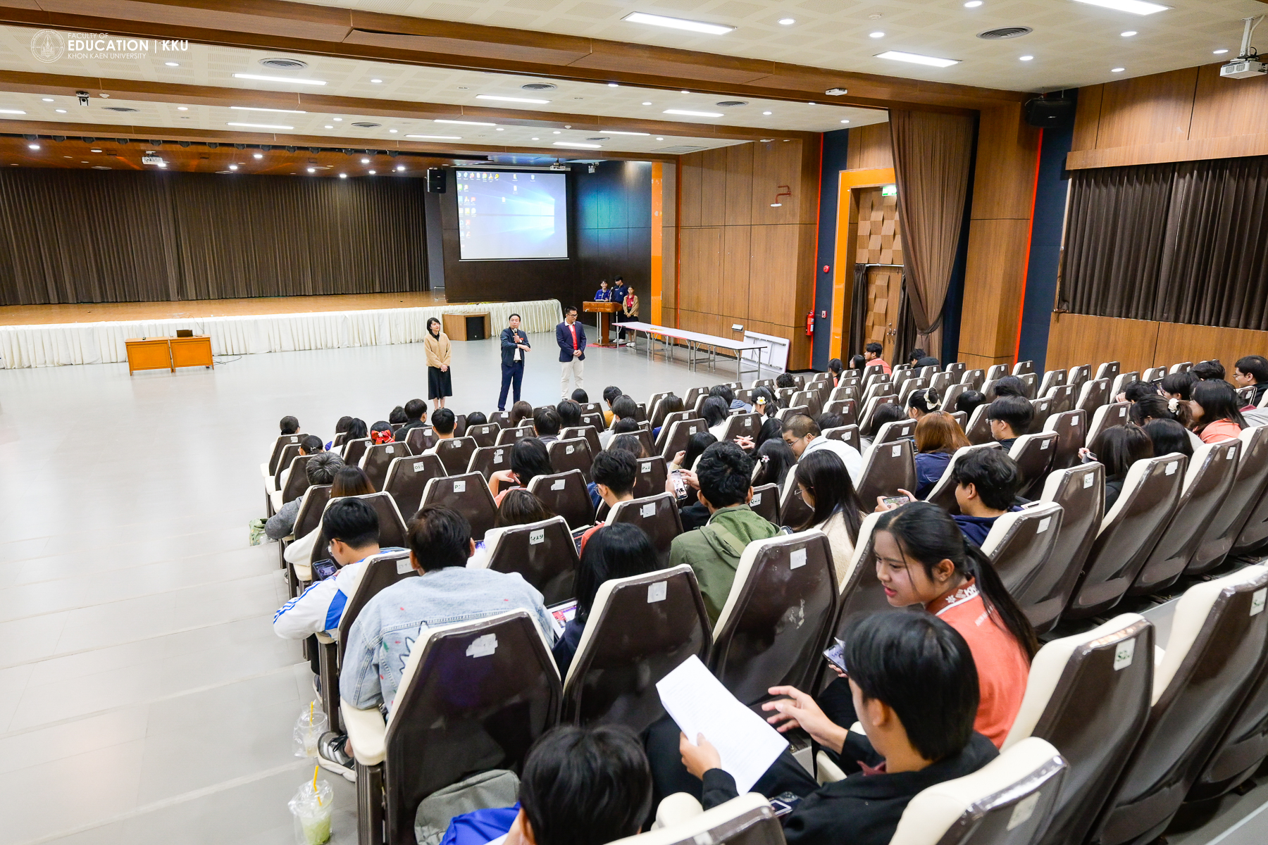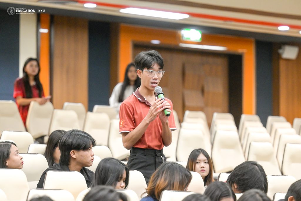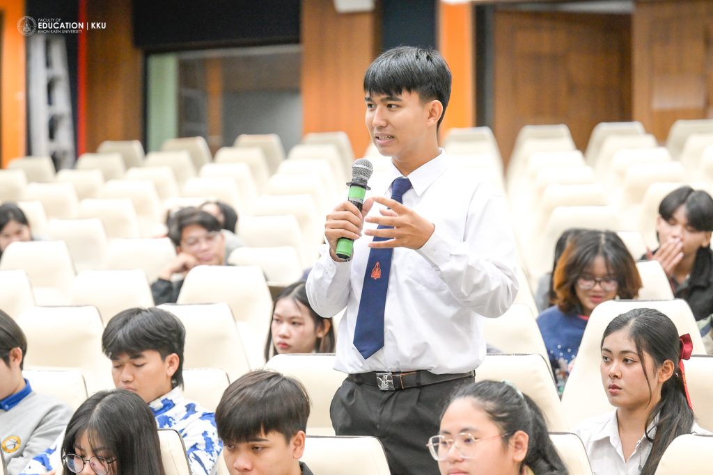 January 8, 2026 – The Faculty of Education, Khon Kaen University, organized the “Student Voice” activity, featuring the presentation of “Best Practices” from each major and the New Year 2026 Welcome Festival at Saisuree Jutikul Room. The ceremony was presided over by Assoc. Prof. Dr. Issara Kanjug, Dean of the Faculty of Education, accompanied by Assoc. Prof. Dr. Wayu Kanjanasorn, Vice Dean for Student Affairs and Sustainable Society, Asst. Prof. Dr. Phattaraporn Pondee, Assistant Dean for Student Development and Alumni Relations, and the Faculty of Education Student Union. The event aimed to listen to opinions and suggestions directly from student representatives, who are regarded as the “heart” of the Faculty’s development.