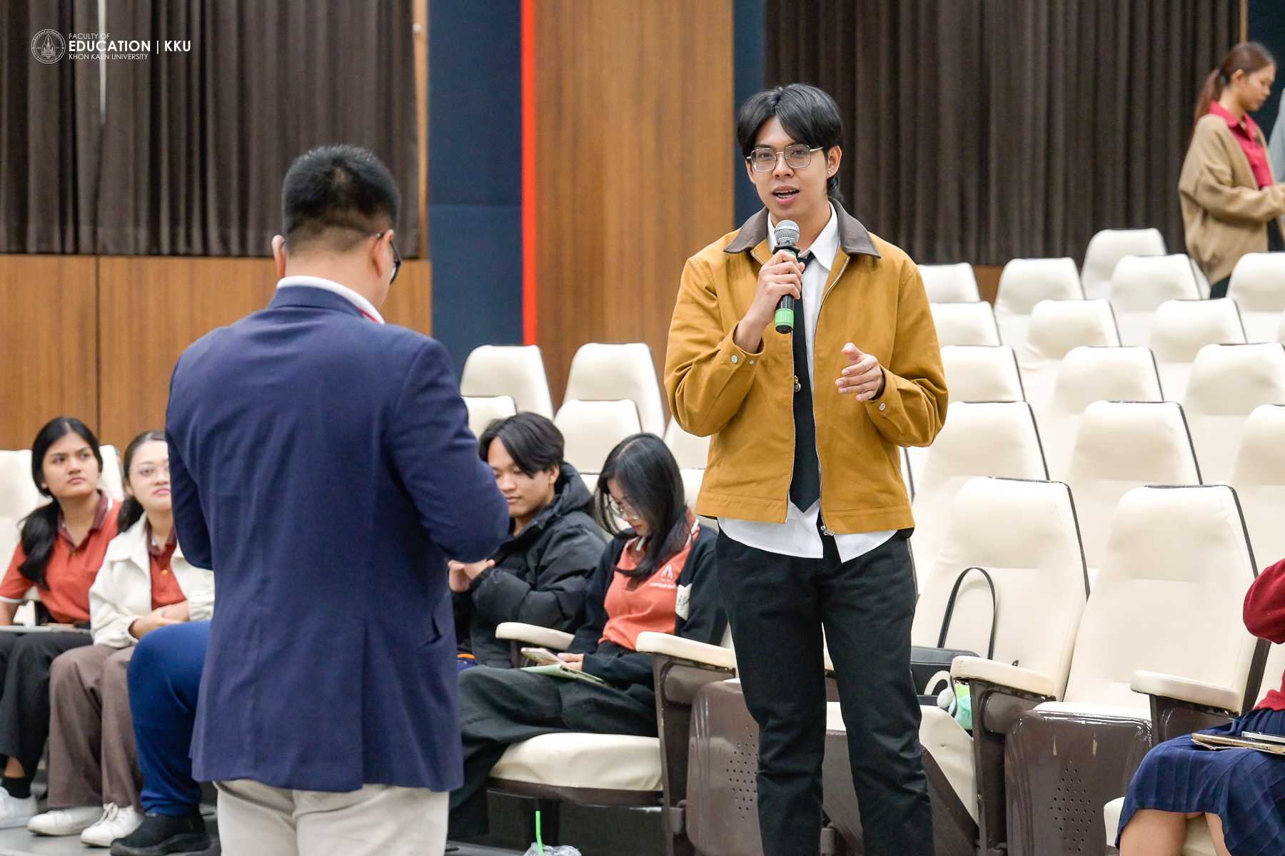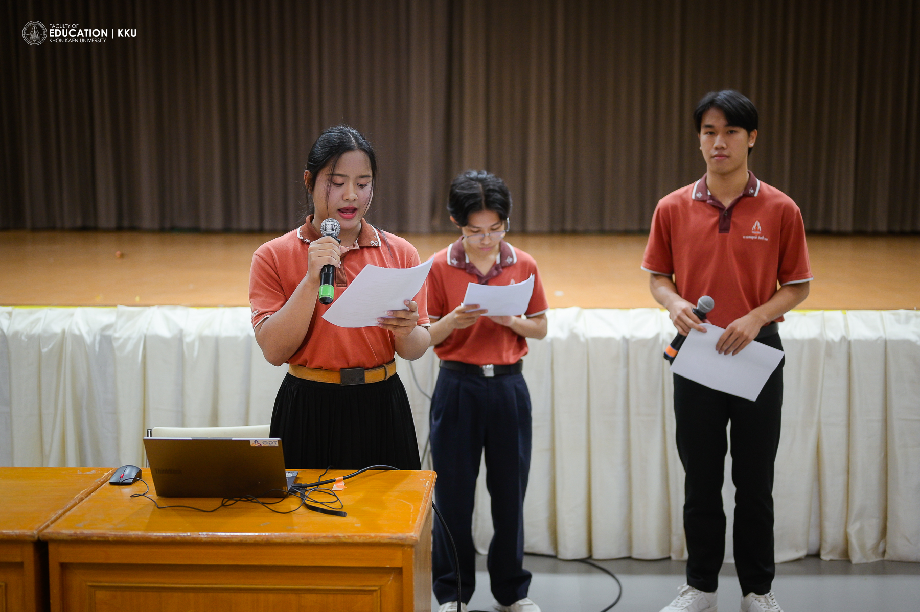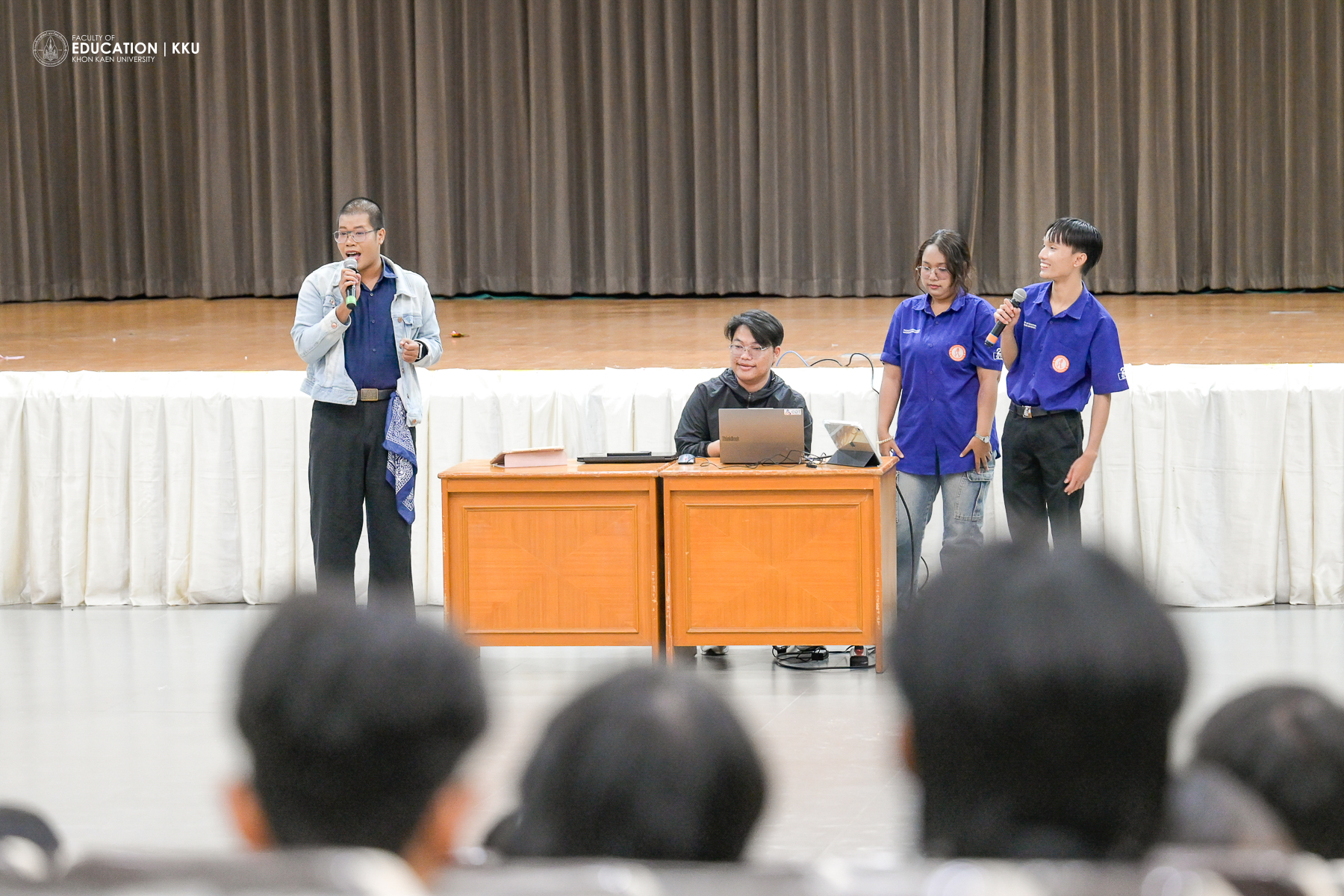 January 8, 2026 – The Faculty of Education, Khon Kaen University, organized the “Student Voice” activity, featuring the presentation of “Best Practices” from each major and the New Year 2026 Welcome Festival at Saisuree Jutikul Room. The ceremony was presided over by Assoc. Prof. Dr. Issara Kanjug, Dean of the Faculty of Education, accompanied by Assoc. Prof. Dr. Wayu Kanjanasorn, Vice Dean for Student Affairs and Sustainable Society, Asst. Prof. Dr. Phattaraporn Pondee, Assistant Dean for Student Development and Alumni Relations, and the Faculty of Education Student Union. The event aimed to listen to opinions and suggestions directly from student representatives, who are regarded as the “heart” of the Faculty’s development.