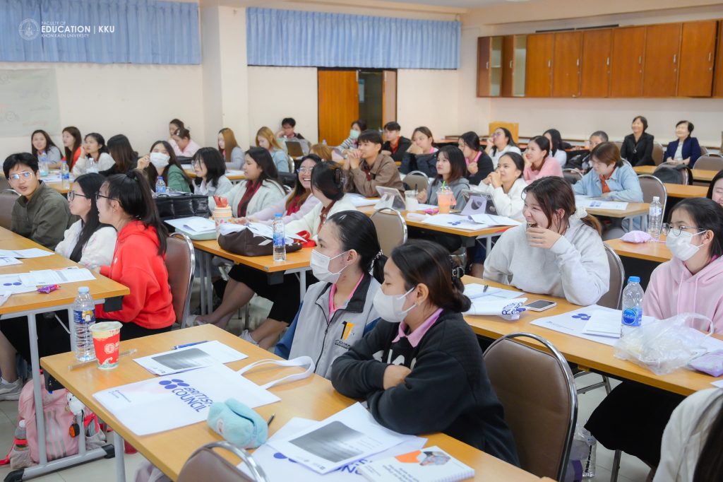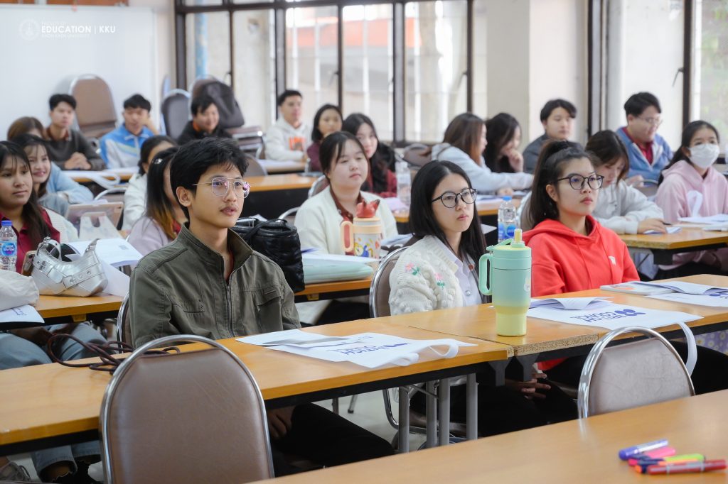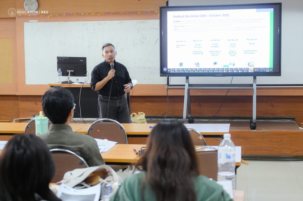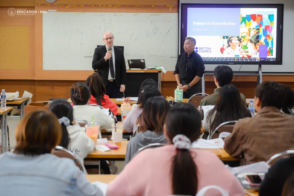 8 มกราคม 2569 – คณะศึกษาศาสตร์ มหาวิทยาลัยขอนแก่น โดย สาขาวิชาการศึกษาปฐมวัยและประถมศึกษา นำนักศึกษาครูชั้นปีที่ 3 เข้าร่วมกิจกรรมปฐมนิเทศและอบรมเชิงปฏิบัติการในโครงการ “English PreBoot” ซึ่งจัดขึ้นโดย บริติช เคานซิล ประเทศไทย (British Council Thailand) ร่วมกับ สำนักงานเลขาธิการคุรุสภา เพื่อพัฒนาทักษะการสอนภาษาอังกฤษรูปแบบ Hybrid เตรียมความพร้อมสู่การเป็นครูมืออาชีพที่มีสมรรถนะการจัดการเรียนรู้ที่ทันสมัย