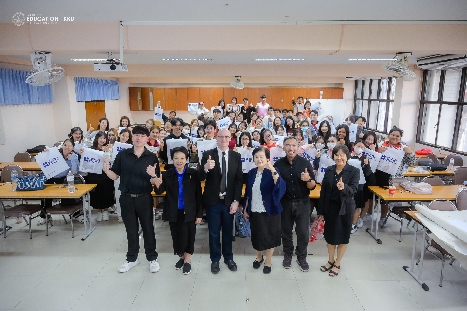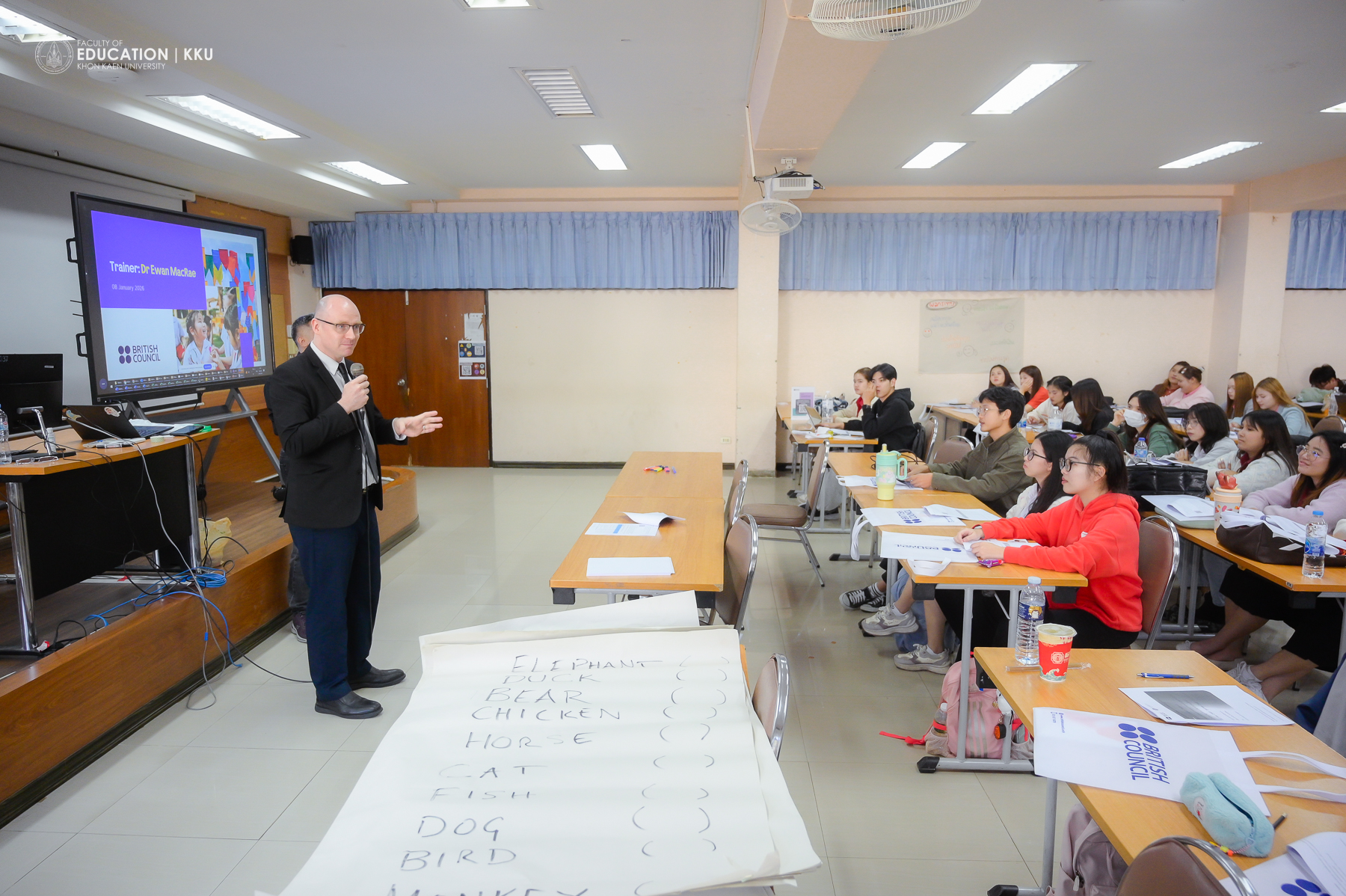 8 มกราคม 2569 – คณะศึกษาศาสตร์ มหาวิทยาลัยขอนแก่น โดย สาขาวิชาการศึกษาปฐมวัยและประถมศึกษา นำนักศึกษาครูชั้นปีที่ 3 เข้าร่วมกิจกรรมปฐมนิเทศและอบรมเชิงปฏิบัติการในโครงการ “English PreBoot” ซึ่งจัดขึ้นโดย บริติช เคานซิล ประเทศไทย (British Council Thailand) ร่วมกับ สำนักงานเลขาธิการคุรุสภา เพื่อพัฒนาทักษะการสอนภาษาอังกฤษรูปแบบ Hybrid เตรียมความพร้อมสู่การเป็นครูมืออาชีพที่มีสมรรถนะการจัดการเรียนรู้ที่ทันสมัย