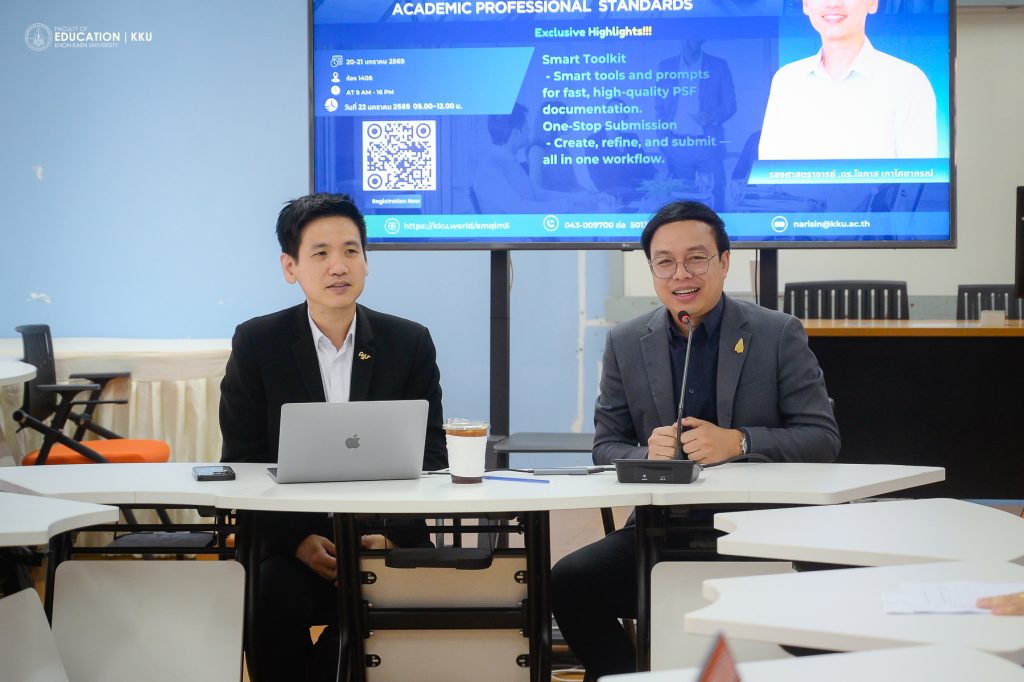 January 20–22, 2026 – The Faculty of Education, Khon Kaen University, held the workshop “Thailand-PSF Accelerator: Strategic Development for Academic Professional Standards” at the ED-TEAL Meeting Room. Assoc. Prof. Dr. Issara Kanjug, Dean of the Faculty of Education, presided over the opening ceremony alongside faculty executives and members. This initiative aims to prepare faculty members to meet the Thailand Professional Standards Framework (Thailand-PSF).