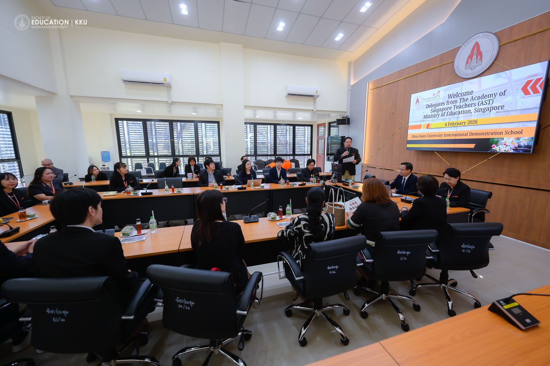 On February 4, 2026, at the Faculty of Education and the Khon Kaen University International Demonstration School (KKUIDS), the Faculty of Education, Khon Kaen University, led by Asst. Prof. Dr. Sarawut Jakpeng, Deputy Dean for Demonstration School, alongside Asst. Prof. Dr. Nattapon Meekaew, Assistant Dean for Network Management and International Affairs, Asst. Prof. Passara Intarakamhang, Consultant for KKUIDS, Dr. Chayachol Cheu-non, and Dr. Tanarat Patinyasakdikul, Consultant for International Education Management, welcomed 7 executives and teacher leaders from the Ministry of Education, Singapore,. This visit was part of the Teacher Leaders Programme 2 (TLP2), organized by the Academy of Singapore Teachers (AST).
