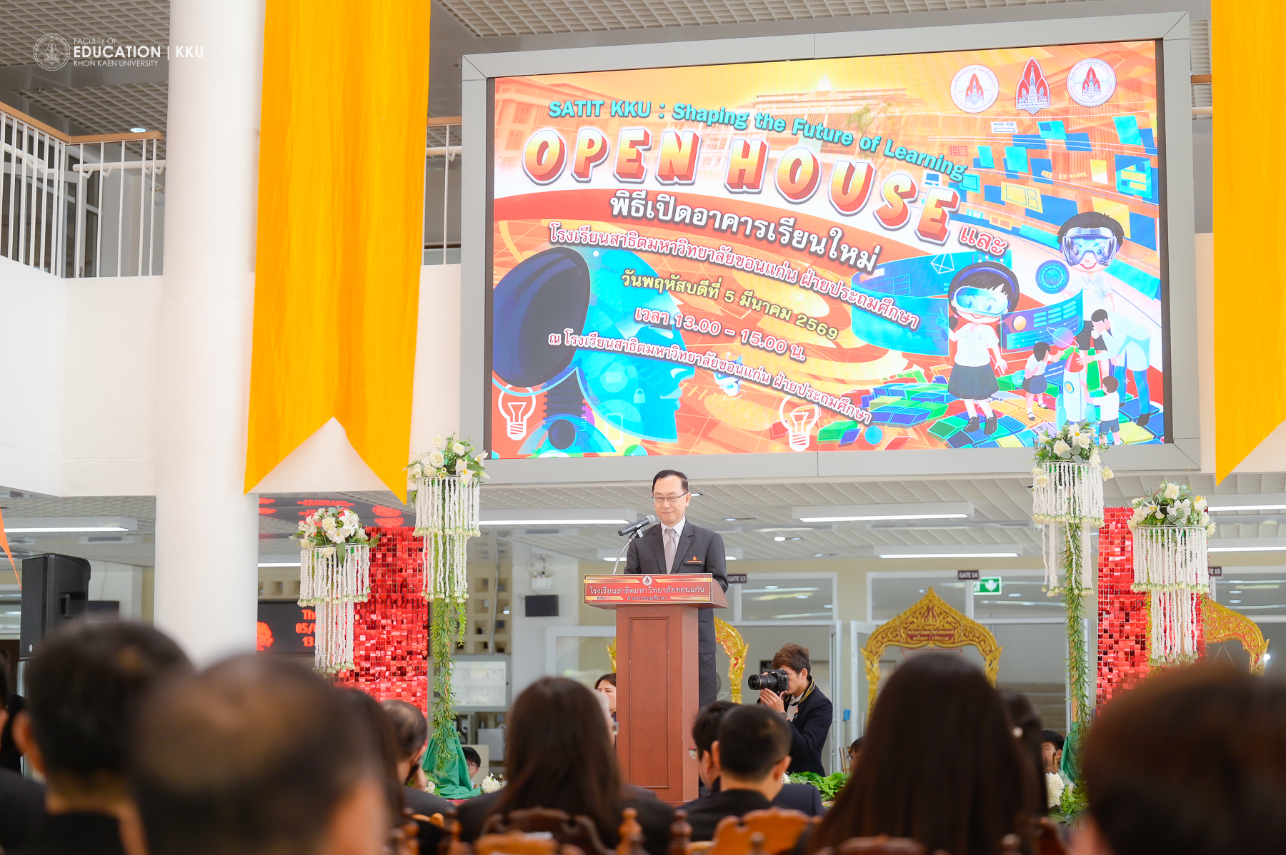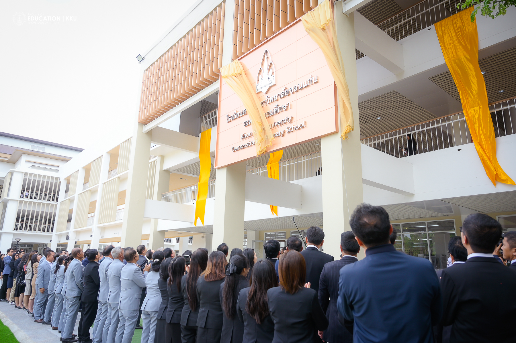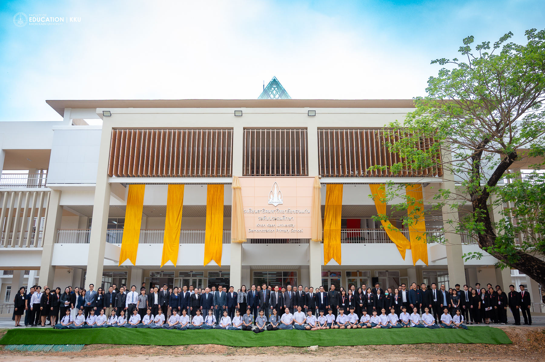 คณะศึกษาศาสตร์ มหาวิทยาลัยขอนแก่น จัดพิธีเปิดอาคารเรียนใหม่ของโรงเรียนสาธิตมหาวิทยาลัยขอนแก่น ฝ่ายประถมศึกษา อย่างเป็นทางการ เมื่อวันที่ 5 มีนาคม 2569 โดยได้รับเกียรติจาก รศ.นพ.ชาญชัย พานทองวิริยะกุล อธิการบดีมหาวิทยาลัยขอนแก่น เป็นประธานในพิธี พร้อมด้วย นายสุรพล เพชรวรา อุปนายกสภามหาวิทยาลัยขอนแก่น และ รศ.ดร.อิศรา ก้านจักร คณบดีคณะศึกษาศาสตร์ ร่วมต้อนรับคณะผู้บริหารและแขกผู้มีเกียรติจากหน่วยงานภายในและภายนอกมหาวิทยาลัย พิธีการเปิดอาคารใหม่ในครั้งนี้ถือเป็นหมุดหมายสำคัญที่สะท้อนถึงความมุ่งมั่นในการจัดการศึกษาที่ทันสมัยและปลอดภัย เพื่อรองรับการเติบโตของนักเรียนกว่า 1,925 คน ในสภาพแวดล้อมที่เอื้อต่อการเรียนรู้เชิงรุกอย่างเต็มรูปแบบ