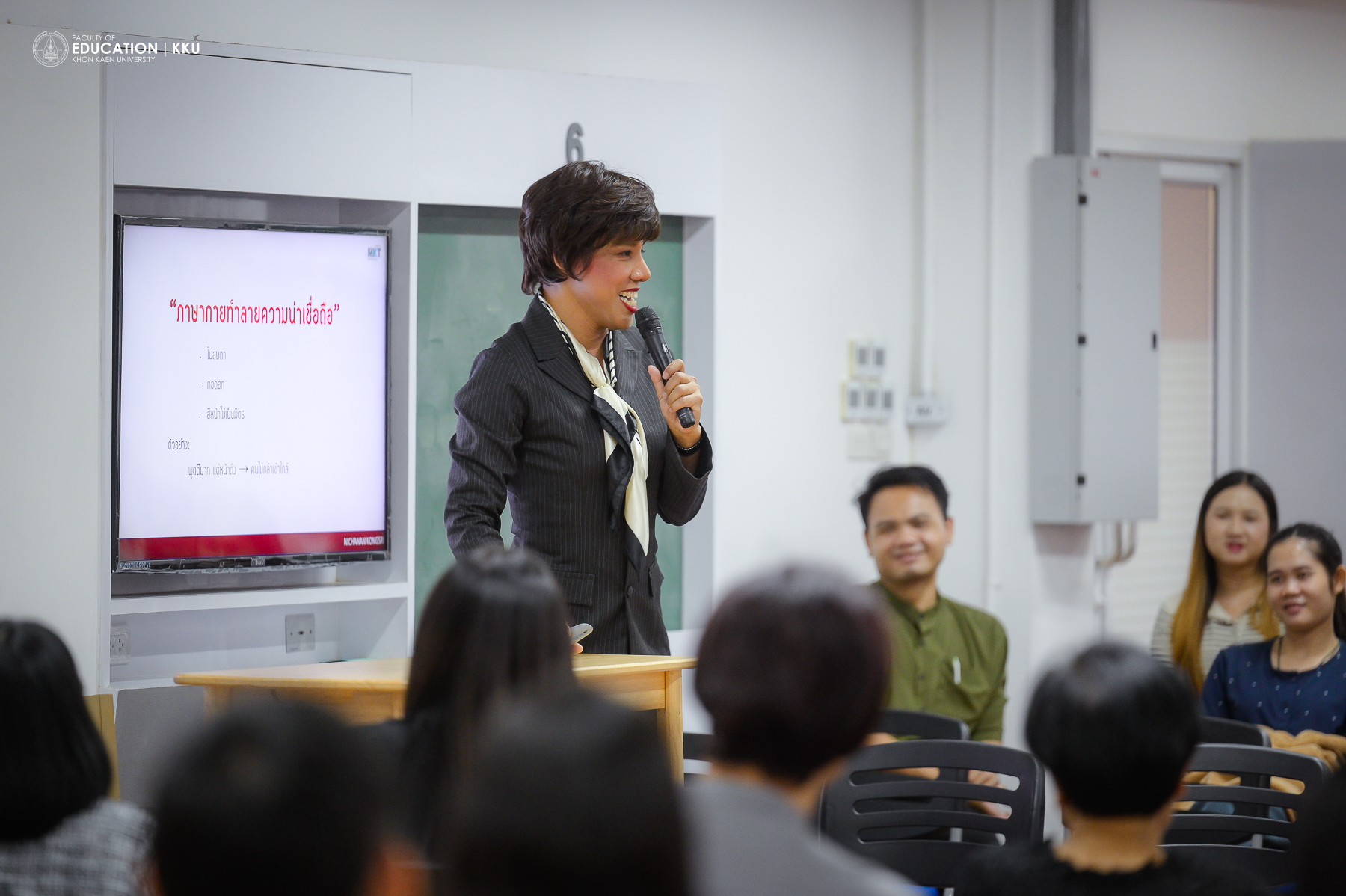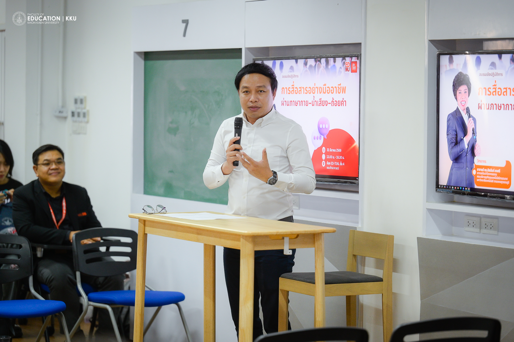 Body: On March 31, 2026, at the ED-TEAL Room, 4th Floor, Faculty of Education, Khon Kaen University hosted a workshop titled “Professional Communication: Body Language, Tone, and Diction.” Assoc. Prof. Dr. Issara Kanjug, Dean of the Faculty of Education, presided over the opening ceremony. The event was attended by administrators, faculty members, and staff from both the Faculty of Education and the Khon Kaen University Demonstration School to enhance their skills and foster an efficient working environment.