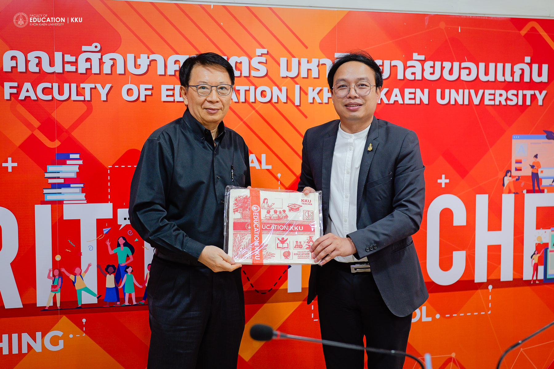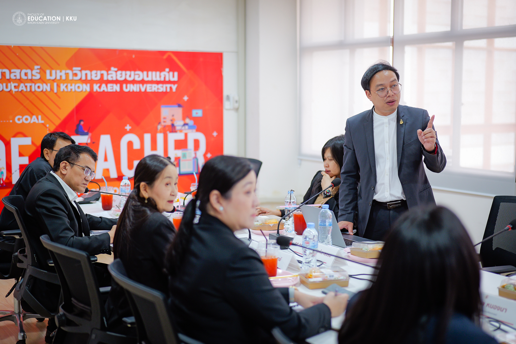 18 มีนาคม 2569 – คณะศึกษาศาสตร์ มหาวิทยาลัยขอนแก่น นำโดย รศ.ดร.อิศรา ก้านจักร คณบดี พร้อมด้วย รศ.ดร.จารุณี ซามาตย์ รองคณบดีฝ่ายการศึกษา และคณะผู้บริหาร ร่วมต้อนรับคณะผู้บริหารจาก สำนักงานเลขาธิการสภาการศึกษา นำโดย ดร.ชัยพฤกษ์ เสรีรักษ์ ที่ปรึกษาสำนักงานเลขาธิการสภาการศึกษา และ ดร.เอกวัฒน์ ล้อสุนิรันดร์ ผู้ช่วยเลขาธิการสภาการศึกษา ในโอกาสร่วมประชุมหารือเพื่อรับฟังข้อมูลและแลกเปลี่ยนมุมมองเกี่ยวกับแนวทางการจัดหลักสูตรผลิตครูให้มีความสามารถในการจัดการเรียนรู้ห้ภาษาอังกฤษเป็นส่วนหนึ่งของการเรียนรู้เนื้อหา เพื่อยกระดับขีดความสามารถของว่าที่ครูไทยในอนาคต