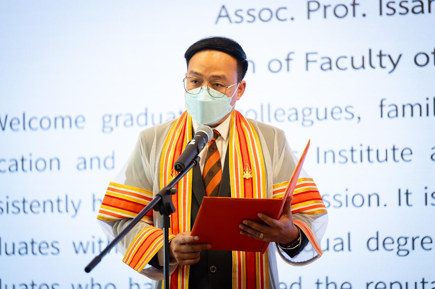 รศ.ดร.อิศรา ก้านจักร กล่าวแสดงความยินดี “ของแสดงความยินดีกับบัณฑิตทุกคน ที่ได้เดินทางมาถึงจุดสำคัญของชีวิตอันเป็นผลจากการประสบความสำเร็จอีกระดับหนึ่งของการศึกษา บัณฑิตทุกคนล้วนเป็นความภาคภูมิใจของมหาวิทยาลัย และ คณะศึกษาศาสตร์ ร่วมถึงคณาจารย์ทุกท่าน ที่ได้ผลิตบัณฑิตที่มีคุณภาพสู่สังคมไทย”